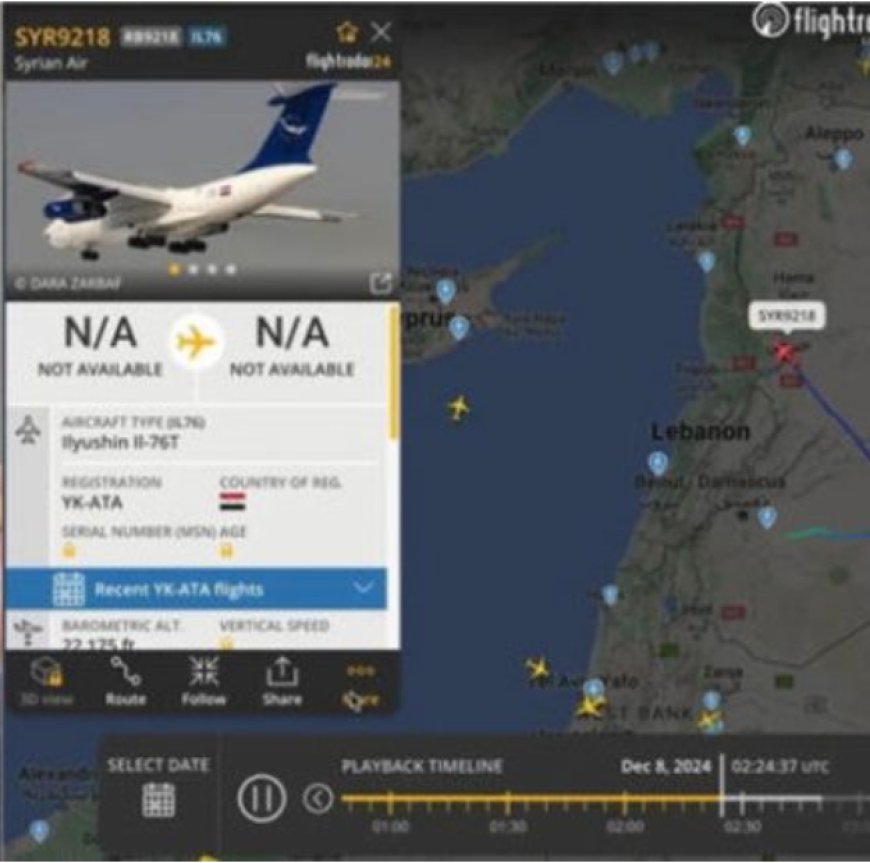 وبشكل غامض، جرى تسجيل رحلة جوية غادرت دمشق، صباح الأحد، من خلال موقع تتبع الرحلات الجوية «فلايت رادار 24»، تقول صحيفة «ذا صن».