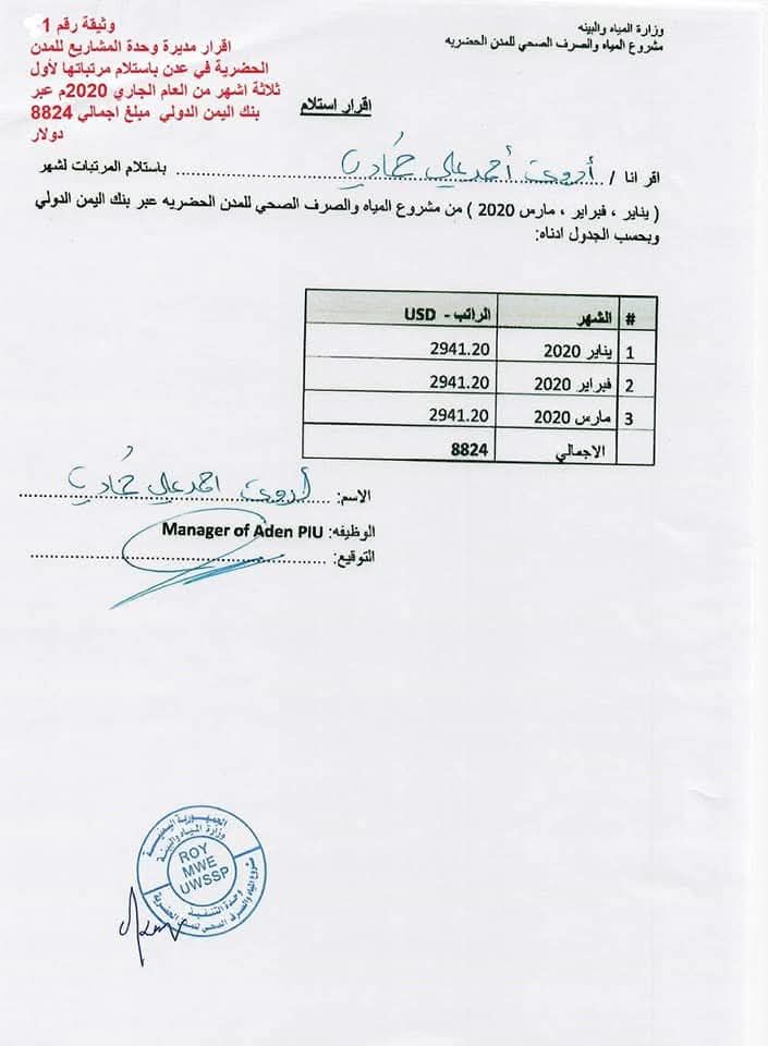 كما أشار الخراز إلى ما أسماه “مشروع المدن الحضرية في عدن” وتساءل عن مخصصاته وماذا قدم لعدن، مشيرًا إلى أن مرتبات مديرة المشروع كانت تُستلم من صنعاء من وزارة الحوثي في عام 2020، وقدم صورة لكشف المرتبات كدليل على ذلك.