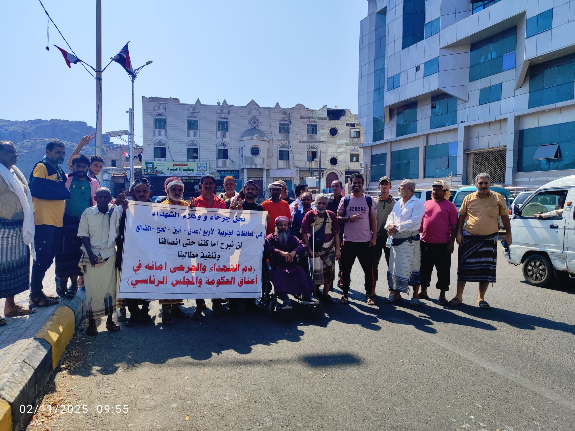 بدأت مجموعة من جرحى الحرب وذوي الشهداء صباح اليوم الموافق 2 نوفمبر 2025م، تنفيذ اعتصام مفتوح أمام البوابة الرئيسية لقصر معاشيق الرئاسي في عدن، للمطالبة بانتزاع حقوقهم المشروعة وتسوية كاملة لأوضاعهم.