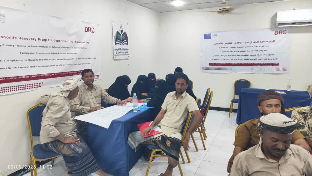 نفذت منظمة المجلس الدنماركي للاجئين (DRC) ضمن برنامج التعافي الاقتصادي صباح يوم الأحد في قاعة مؤسسة روابي ردفان دورة تدريبية تخصصية لتعزيز القدرات لممثلي الجمعيات المحلية المختارة حول التخطيط التشاركي القائم على المجتمع وإدارة الموارد الطبيعية وذلك في إطار مشروع بناء قدرات وصمود المجتمعات اليمنية في مواجهة آثار التغير المناخي.