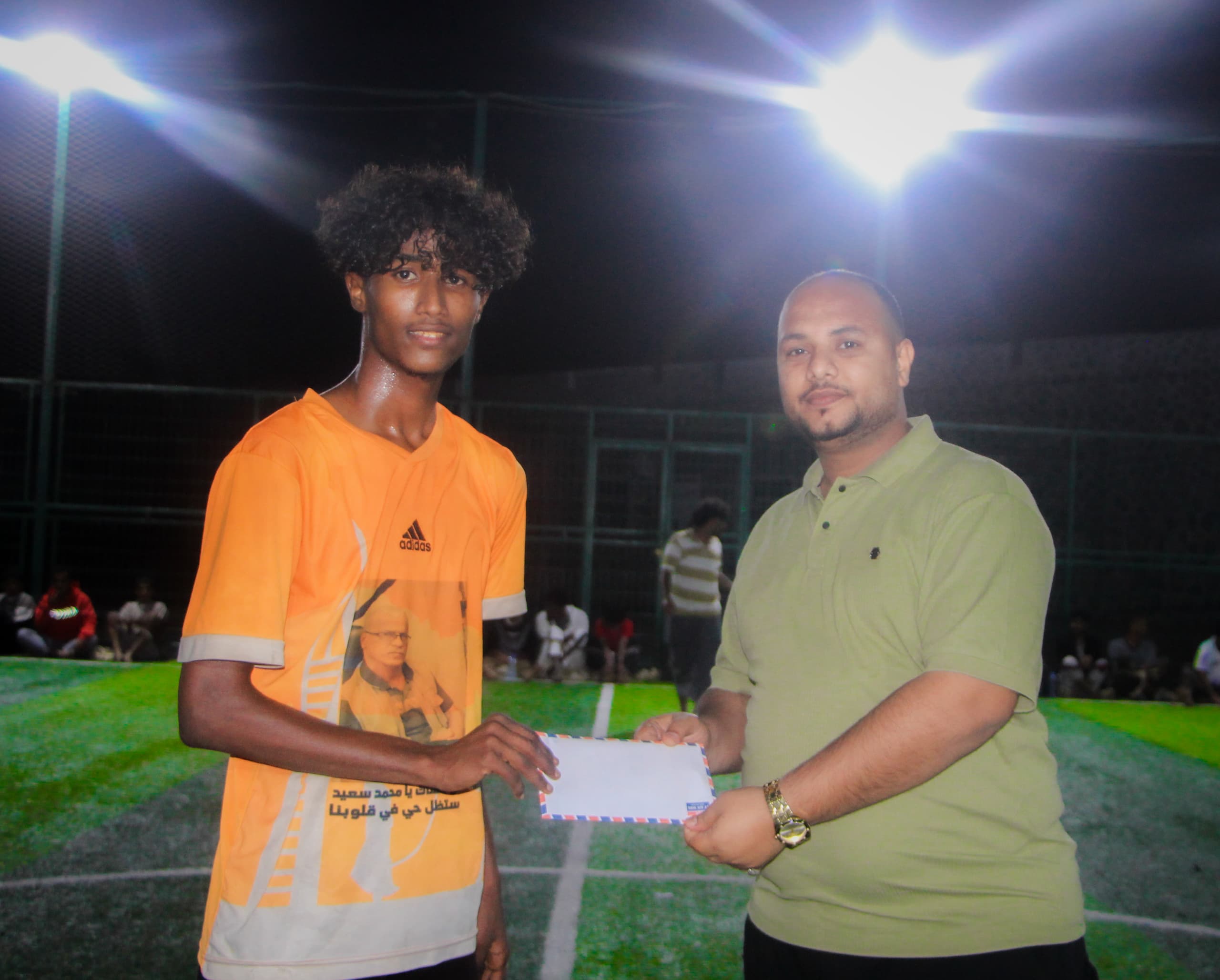 ونال جائزة أفضل لاعب في المباراة اللاعب نذير محمد من فريق شهداء دار سعد بعد تألقه اللافت وتسجيله ثنائية، حيث تسلم جائزته من الكابتن صلاح الأصبحي منظم البطولة