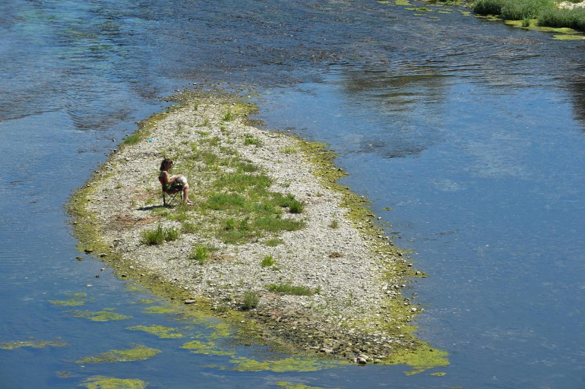 أما في بلدة كارمانيولا الواقعة قرب مدينة تورينو، فقد جلست هذه السيدة فوق ظهر قاع نهر بو، أطول أنهار إيطاليا، الذي يشهد أسوأ موجة جفاف منذ 70 عاماً.