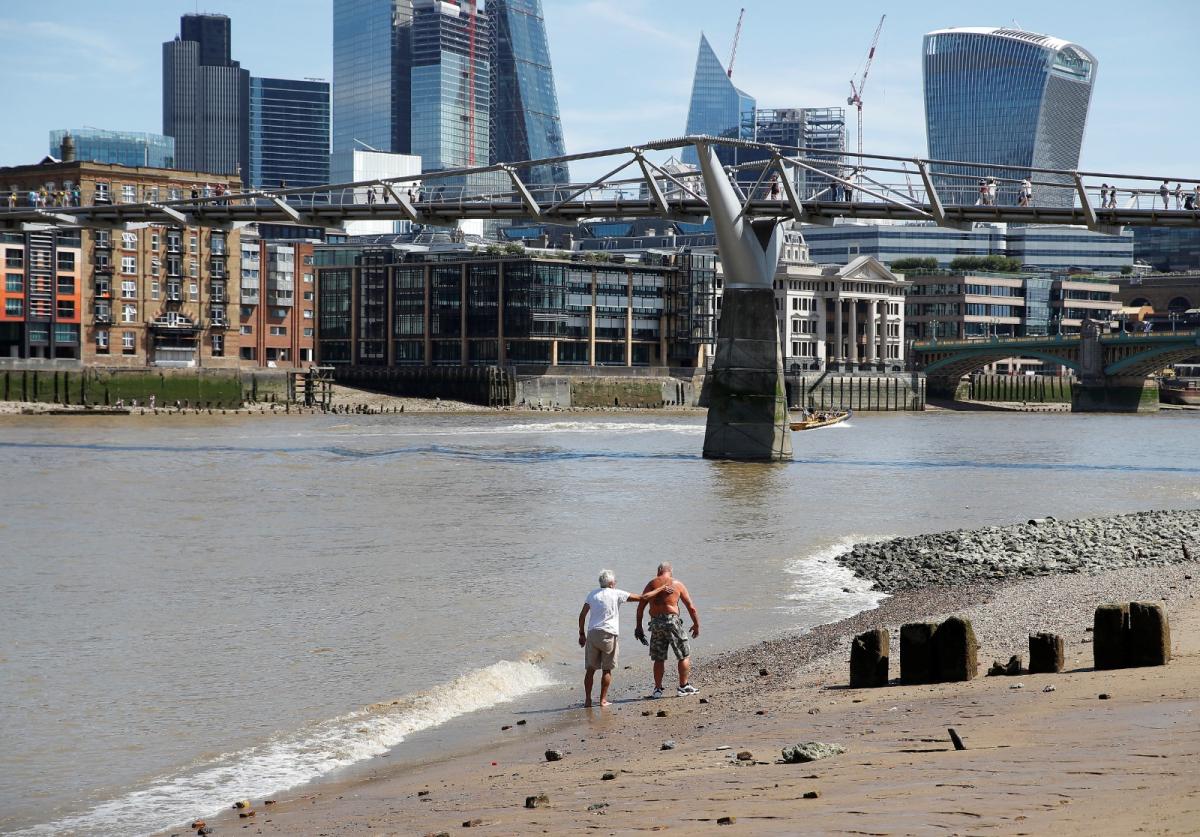 وفي لندن استغل هذين الرجلين انحسار نهر التايمز للقيام بنزهة نادرة.