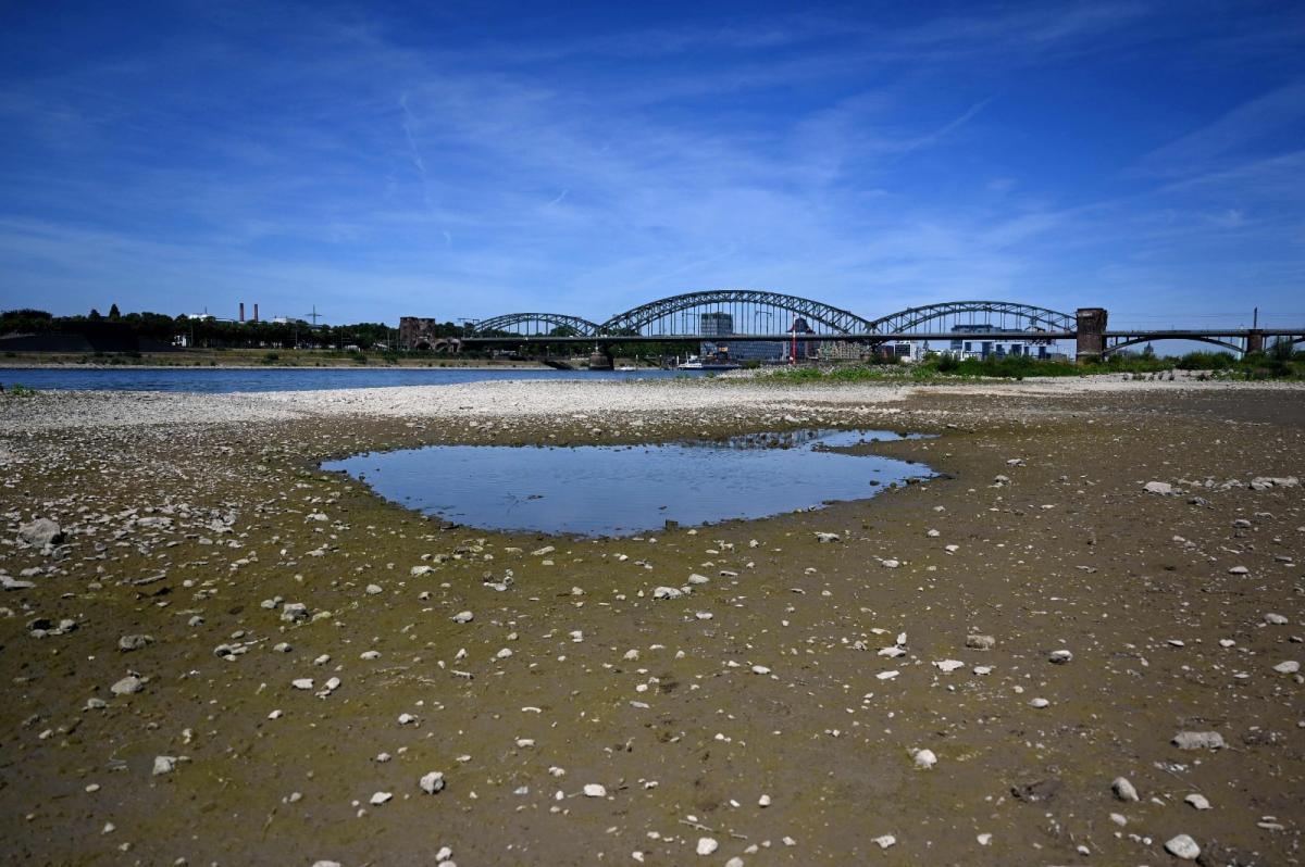 وفي ألمانيا تحول مجرى نهر الراين إلى بقع متناثرة من المياه بالقرب من كولون.