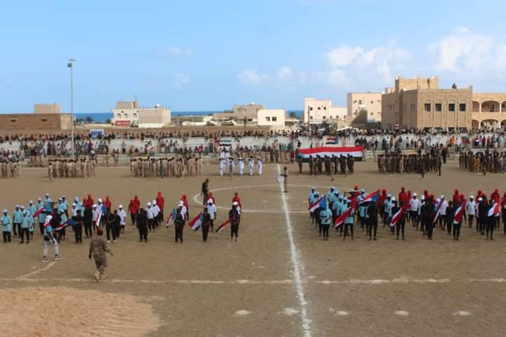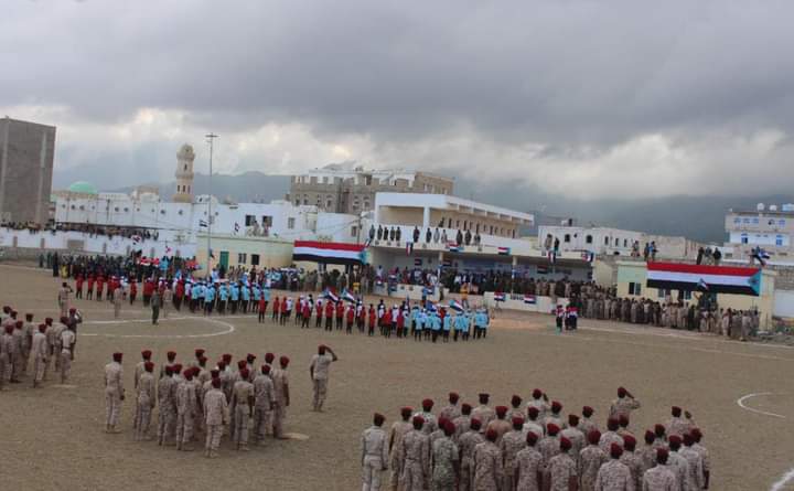 وقد تخلل الحفل عرض عسكري مهيب بالإضافة إلى الرقصات الشعبية من الفلكلور السقطري ورقصات لبراعم الأطفال والزهرات التي نالت استحساناً وإعجاباً الجميع.